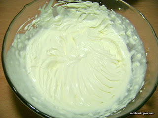 2-Batimos la crema a medio punto(es para darle consistencia, pero no debe estar dura) y reservamos en la heladera.